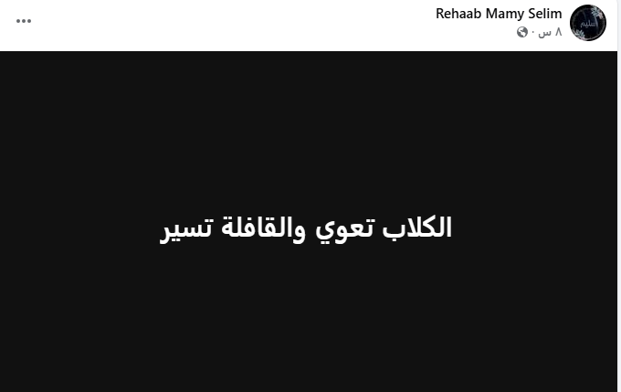 وفي أول تعليق من طليقة سعيد مختار بعد قتله، كتبت رحاب منشورا، عبر حسابها الشخصي بموقع التواصل الاجتماعي فيس بوك، قالت فيه: "الكلاب تعوي والقافلة تسير".