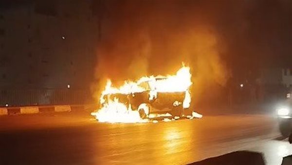 السيطرة على حريق ميكروباص أعلى الطريق الدائري في البراجيل