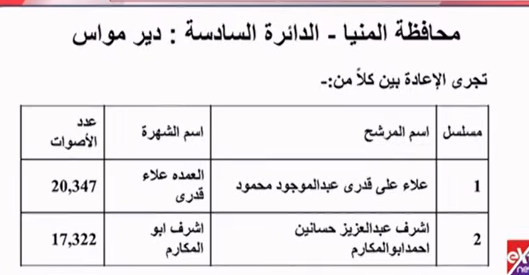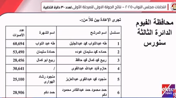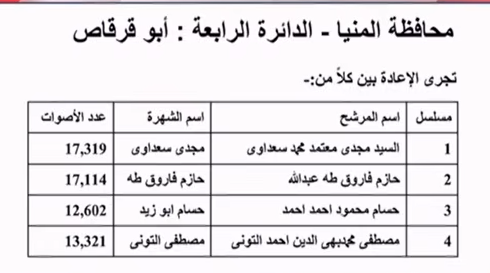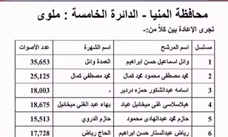 وجاءت نتيجة انتخابات النواب في محافظتي المنيا والفيوم كالتالي: