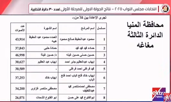 الوطنية للانتخابات تعلن نتيجة انتخابات النواب بالدوائر الملغاة في المنيا والفيوم