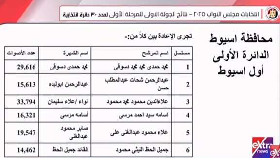 وجاءت نتيجة انتخابات النواب في أسيوط والوادى الجديد وسوهاج، كالتالي:
