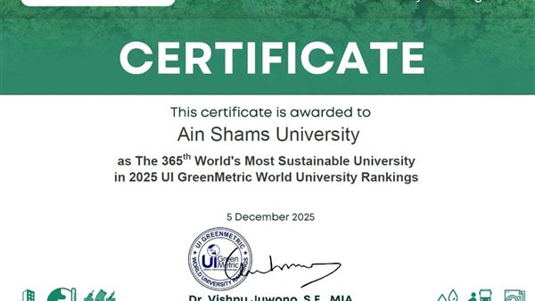 جامعة عين شمس ضمن أفضل 21% من جامعات العالم في تصنيف Green Metric 2025