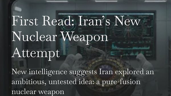 في تقرير له قال نداف إيال الباحث السياسي والصحفي الإسرائيلي، إن إيران تفكر في ابتكار سلاح نووي جديد من نوعه، يعتمد على الاندماج النقي بدون يورانيوم أو بلوتونيوم.