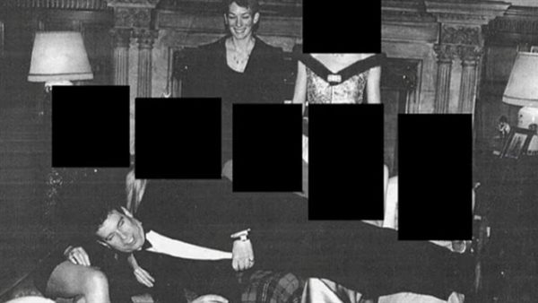 وتُظهر الصورة أندرو مبتسمًا للكاميرا وهو يرتدي ربطة عنق وسترة رسمية، ووجهه قريب من ساق إحدى النساء العاريات تقريبًا، فيما تظهر ماكسويل في الخلفية مع امرأة أخرى لم يُكشف عن هويتها.