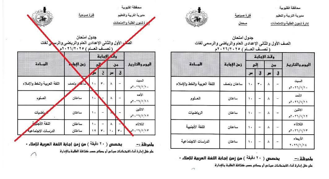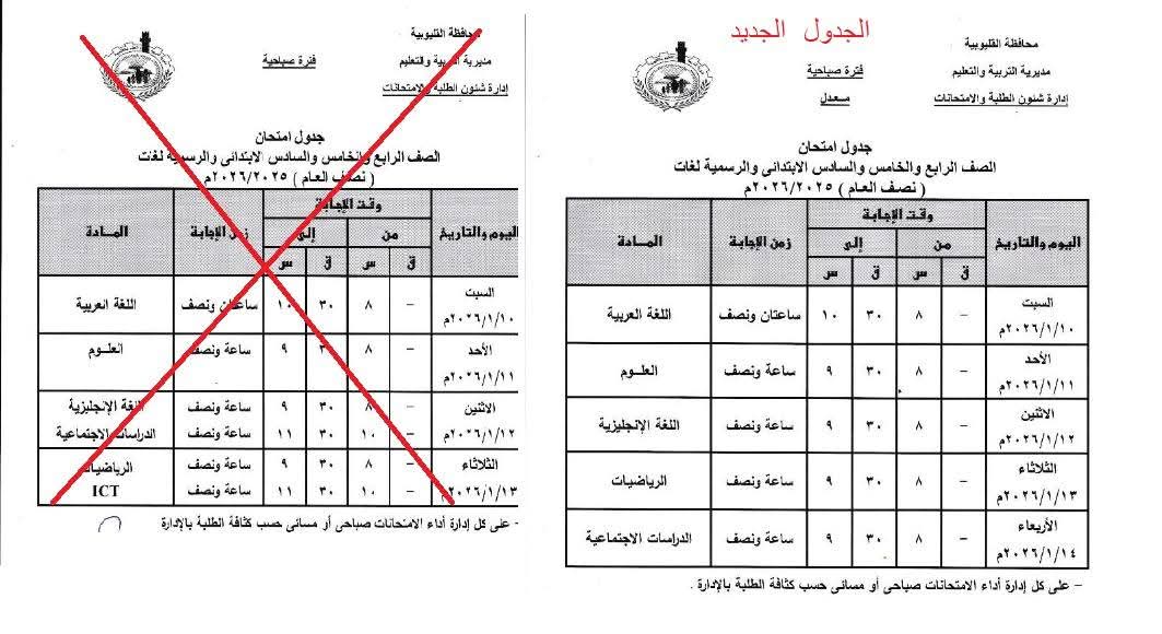 تعليم القليوبية تُعدل جدول امتحانات النقل للمرحلتين الابتدائية والإعدادية.. والامتحانات تبدأ 10 يناير