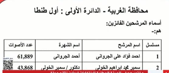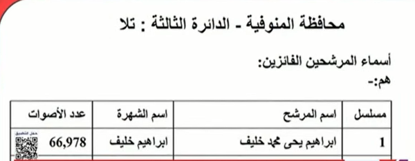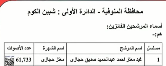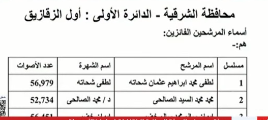وجاءت نتيجة انتخابات النواب في محافظات المنوفية والغربية وكفر الشيخ والشرقية كالتالي: