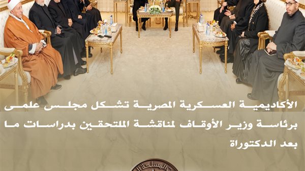 تنفيذا لتوجيهات الرئيس عبد الفتاح السيسي رئيس الجمهورية القائد الأعلى للقوات المسلحة للارتقاء بالمستوى العلمي بين أبناء الوطن، استقبلت الأكاديمية العسكرية المصرية الدكتور أسامة الأزهري وزير الأوقاف، وذلك لرئاسة المجلس العلمي المشكل لمناقشة الجوانب العلمية والدينية واللغوية للملتحقين بدراسات ما بعد الدكتوراه من أبناء المؤسسة الدينية المصرية ضمن المستوى الدراسي المتقدم لصقل الجوانب العلمية والمعرفية التخصصية لديهم.