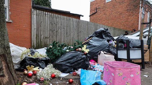 وحسب ما نشرته صحيفة ديلي ميل البريطانية، أعرب سكان بريطانيون غاضبون عن استيائهم الشديد بعدما امتلأت صناديق القمامة بالنفايات المتراكمة بعد يومين فقط من 25 ديسمبر، حيث تُركت أكياس القمامة السوداء وبقايا احتفالات عيد الميلاد لتتعفن في شوارع مناطق سمول هيث وبوردسلي غرين، وسط غياب أي موعد واضح لجمع النفايات.