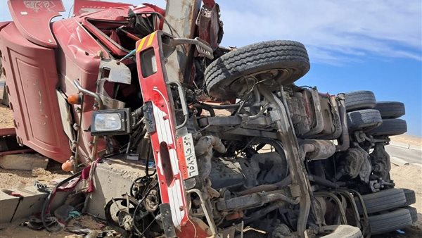إصابة شخصين في انقلاب سيارة نقل على طريق العين السخنة