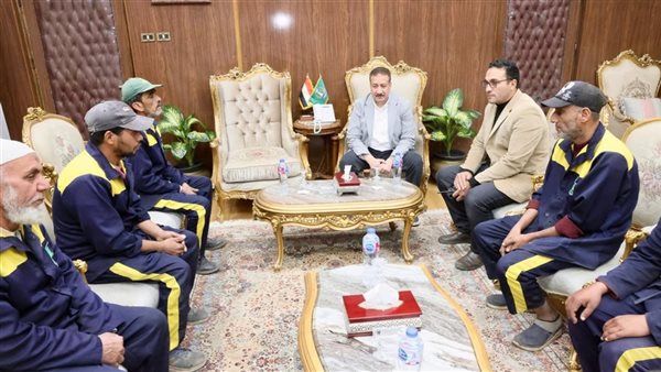 محافظ المنوفية يلتقي عمالة النظافة في مكتبه