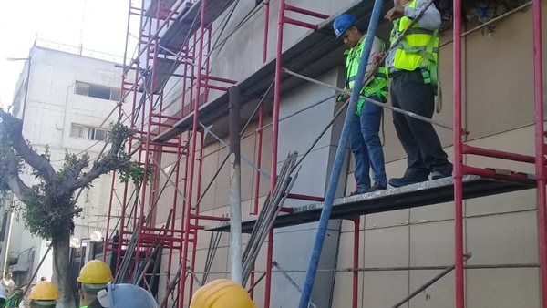 يد تبني ويد تعالج، يد تحمل السلاح ويد تعمر “كلمات تعبر عن المشهد الصباحي في معهد الأورام اليوم الثلاثاء، وذلك بمتابعة العمل سواء في إجراء الإصلاحات في واجهة المعهد بواسطة رجال المقاولون العرب، فيما يعمل الموظفين في المعهد على استقبال المرضى من مختلف المحافظات.