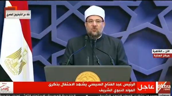 مفتي الجمهورية يهنئ الرئيس السيسي والأمتين العربية والإسلامية بمناسبة المولد النبوى الشريف