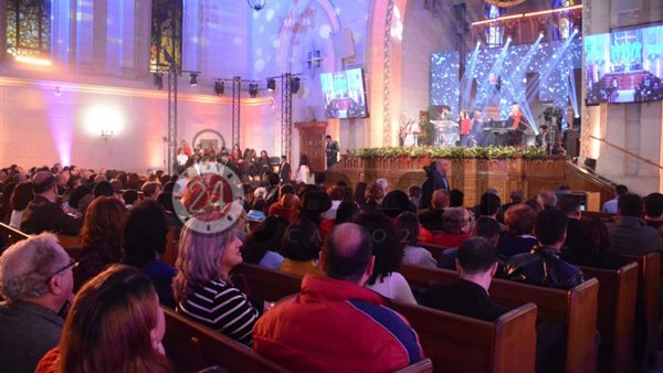 وحضر في القاعة الرئيسية المئات من المحتفلين، وسط تشديدات أمنية مكثفة بمحيط كنيسة القصر بالتحرير.