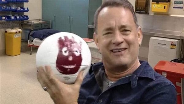 وانتشرت الصورة على صفحات من مواقع التواصل الاجتماعي المختلفة، وعُلق عليها: “ممرضات المستشفى اللي توم هانكس قاعد فيها، رموله Wilson عشان يونسه في الحجر الصحي”، وكانت الصورة الحقيقية التُقطت له وهو جالس وسط الجماهير.