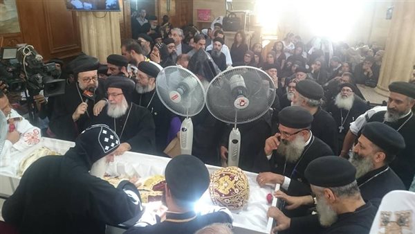 تستمر حتى اللحظة مراسم الصلاة على جثمان نيافة الأنبا بيشوي، مطران كفر الشيخ ودمياط ورئيس دير القديسة دميانة ببراري بلقاس.