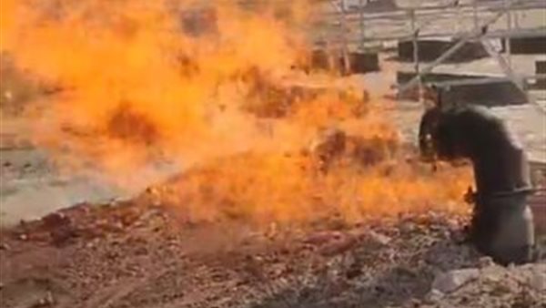 استمرار اندلاع النيران من بئر مياه بالمنطقة الصحراوية في سوهاج لليوم الثالث
