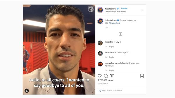 وداع لويس سواريز لبرشلونة يتصدر احتفاء انستجرام بالذكرى العاشرة لتأسيسه