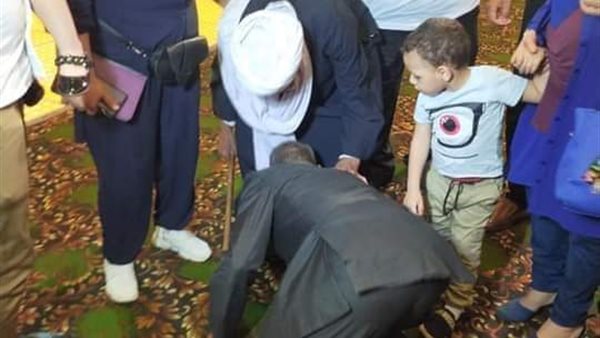 بر الوالدين.. مدير تعليمية قنا يقبّل قدم والده بعد بلوغه سن المعاش (صور)
