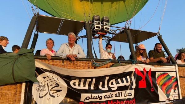 وقال عمر عز لـ”القاهرة 24″، إن الرحلة التي انطلقت فجر اليوم، كانت تضم سائحين من جنسيات مختلفة بينهم سائحون فرنسيون، لافتًا إلى أنهم لم يبدوا أي اعتراض بل تفاعلوا مع البانر خلال رفعه بباص البالون ومرافقته لرحلتهم في السماء، مدركين أننا متعلقون بديننا ونقدر رسولنا ونرفض أية إساءة له.
