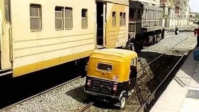 "توك توك" يقتحم محطة فاقوس بالشرقية أثناء وجود قطار على الرصيف (صور)