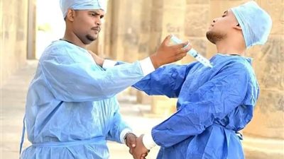 "بزي الممرضين والحقنة".. طلاب كلية التمريض يبتكرون فكرة جديدة للاحتفال بالتخرج (صور)