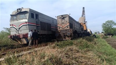 محاولات لإعادة جرار قطار دسوق إلى القضبان بمزلقان قراقص بدمنهور